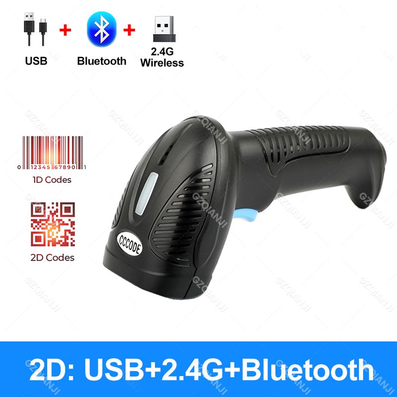 Bluetooth 2D Barcode Reader And Stand 1d QR PDF417 2.4G Wireless Wired Handheld Barcode Scanner USB Support Mobile Phone iPad