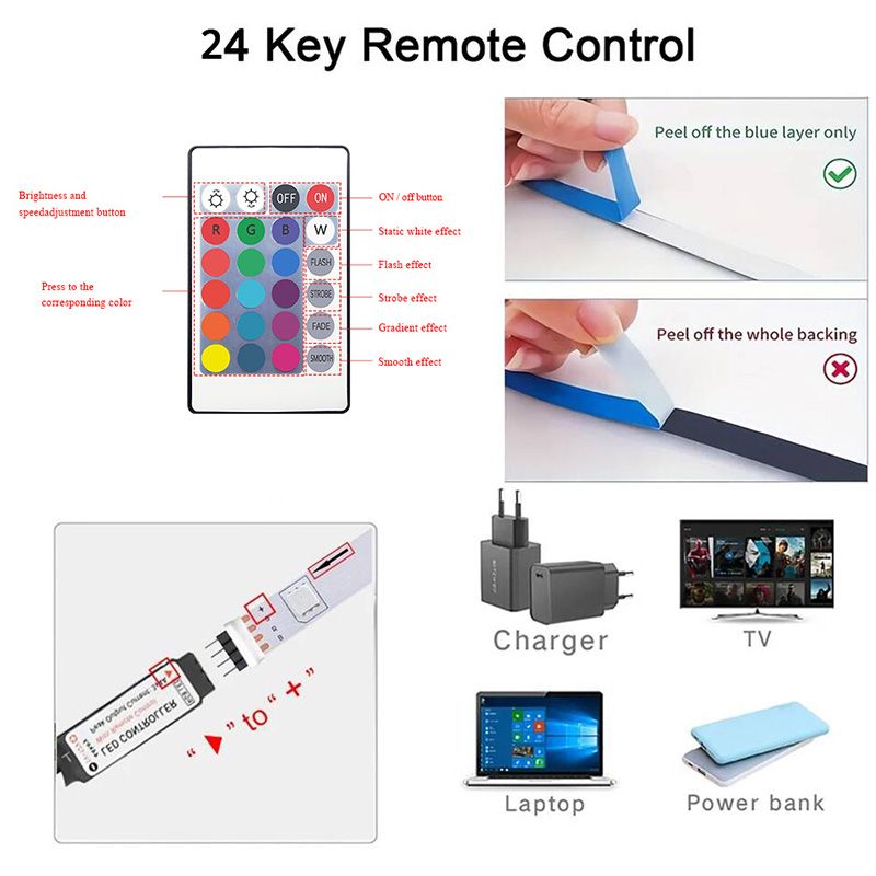 Bluetooth controller:Led Strip + Bluetooth controller + Infrared Remote controller.(Can Use The Mobile App To Control The Light Strip)