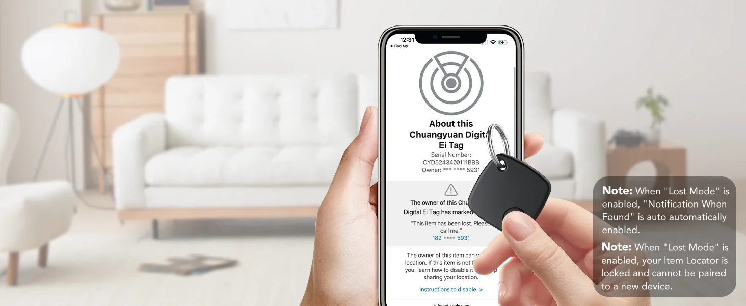 When "Lost Mode" is enabled, DO NOT REMOVE the device in the app. If you do, your Item Locator will be locked and cannot be paired with a new device.