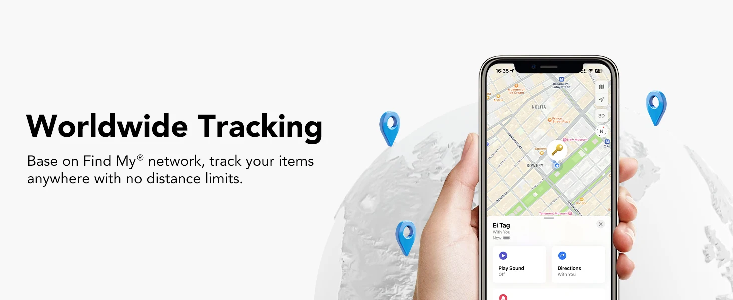 • Global Tracking—— Track items anywhere using Apple's Find My network, even when out of Bluetooth range
