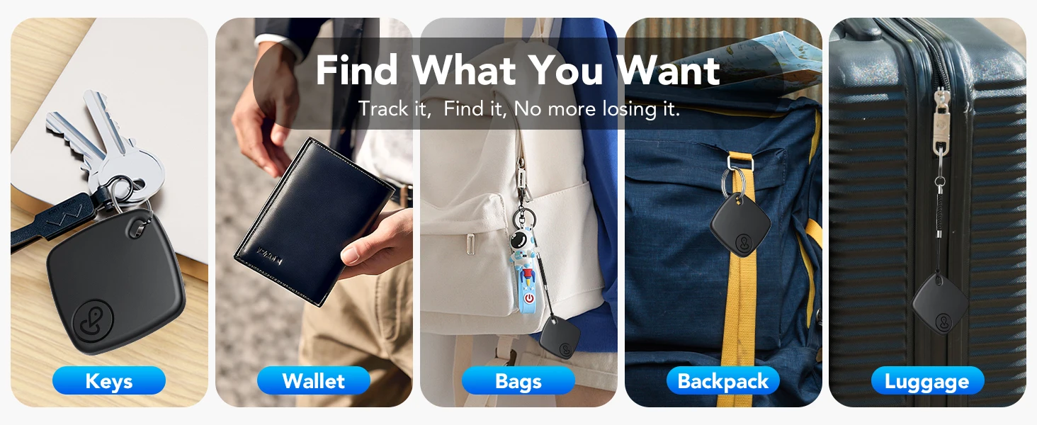 • Applications: Keys, wallets, bags, luggage, pets, kids items