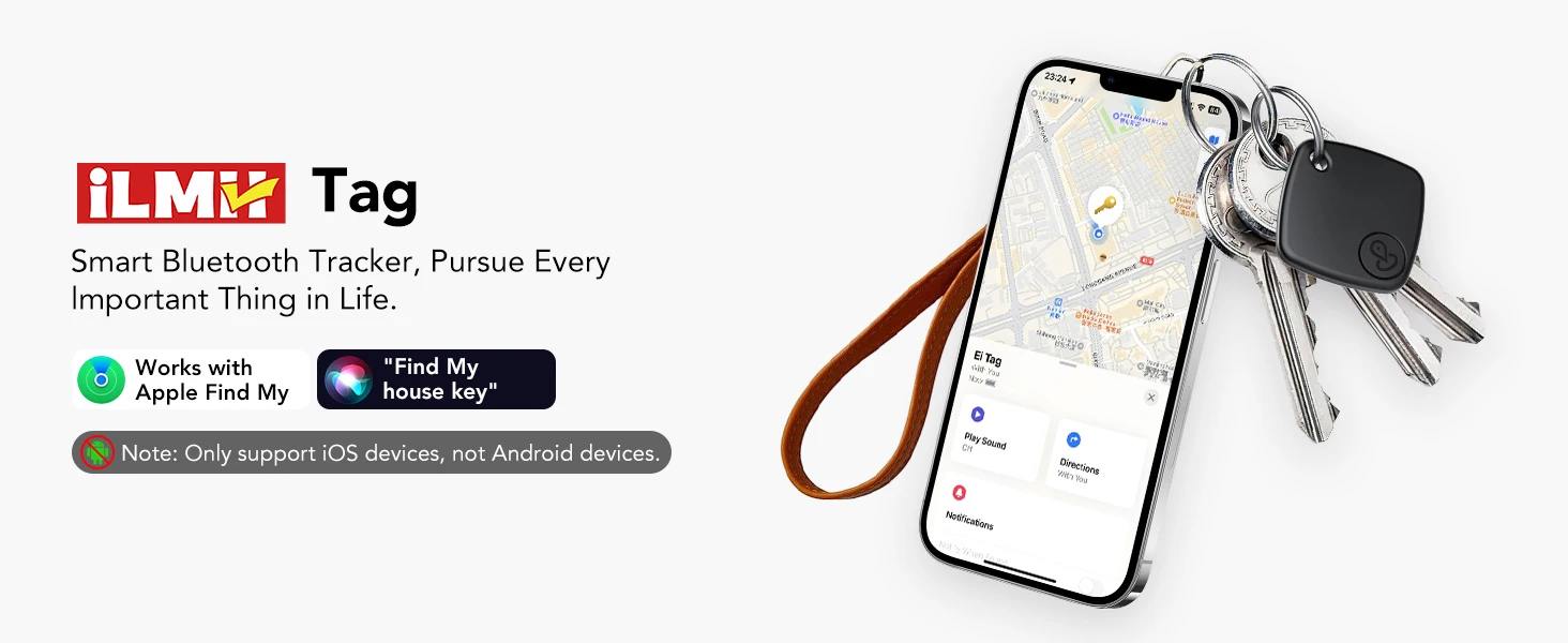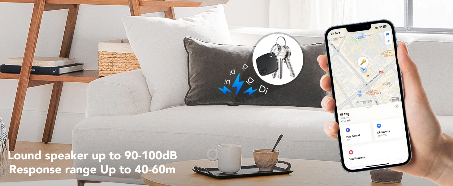 • 200ft Bluetooth Range—— Find nearby items within 60m using Find My app or Siri, with loud 90-100dB speaker beeps