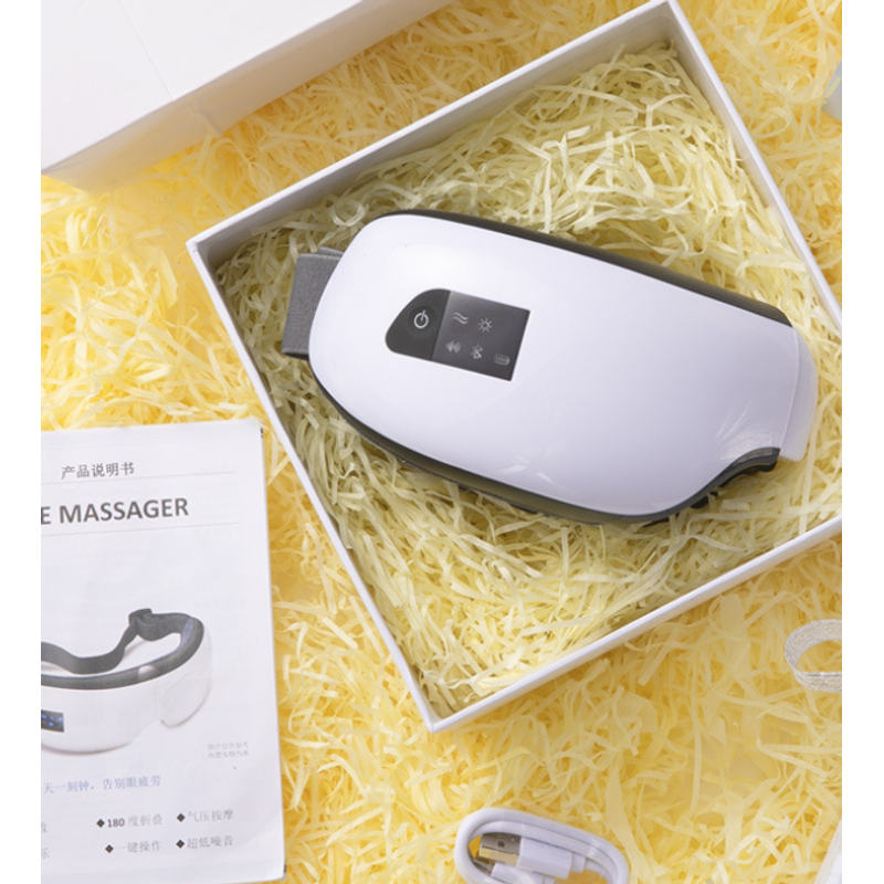 The eye massager features intelligent air pressure, vibration, massage and hot pressing massage techniques.