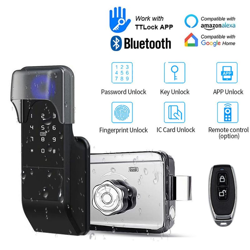 Bluetooth TTLOCK Mobile APP Fingerprint Door Lock Wooden Gate Opener Remote Control Electronic Lock Biometric IP65 Waterproof