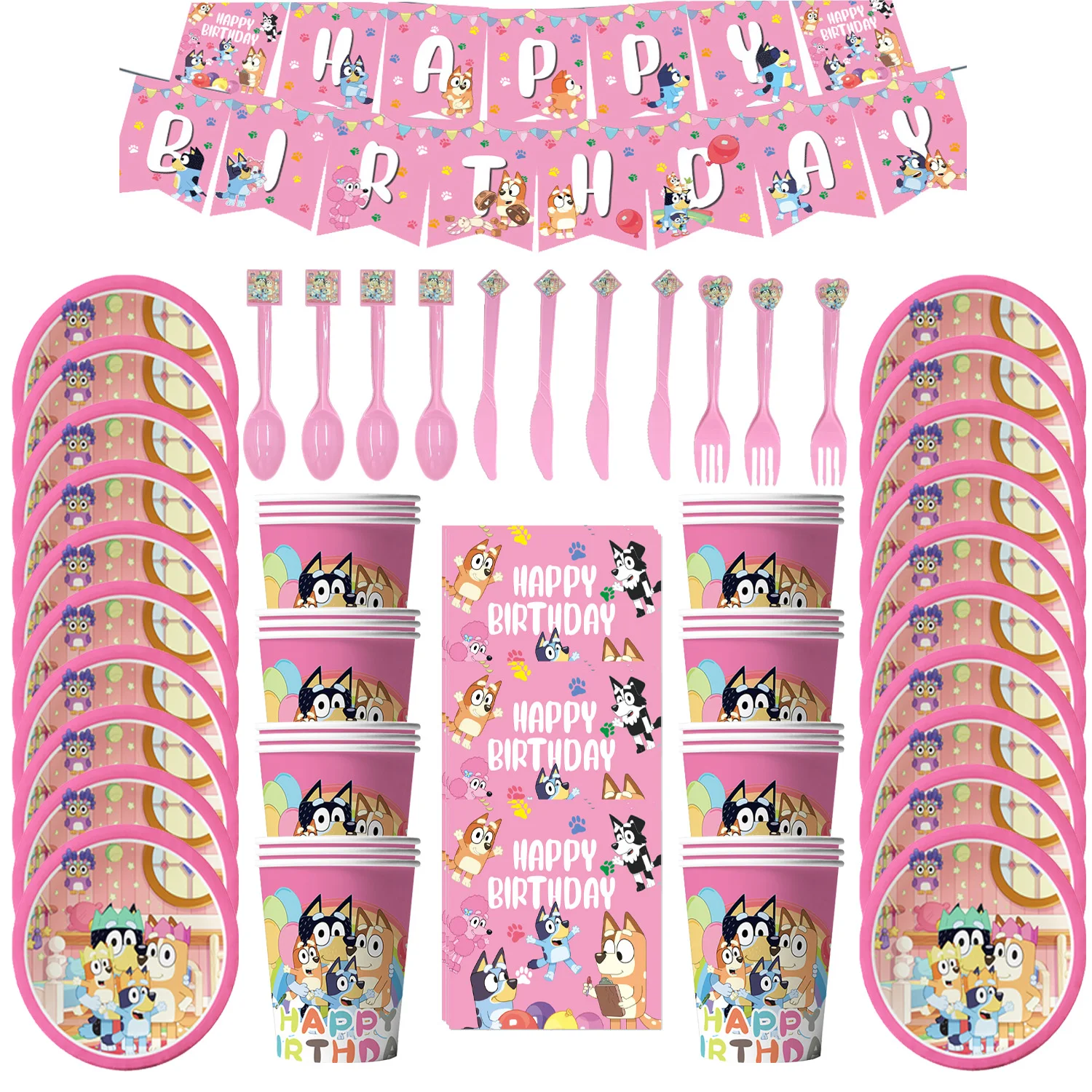 Bluey Birthday Decoration Pink Bluey Theme Balloon for Kids Party Backdrop Tableware Set Baby Shower Supplies Girl Gift