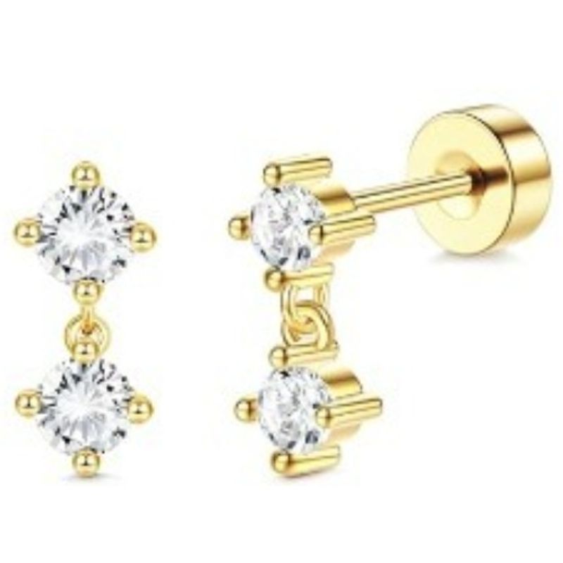 Bobisty 1 Pair 14K Gold Plated Flat Back Stud Hoops Earrings for Women Men CZ Stainless Steel Cute Cartilage Piercing Jewelry
