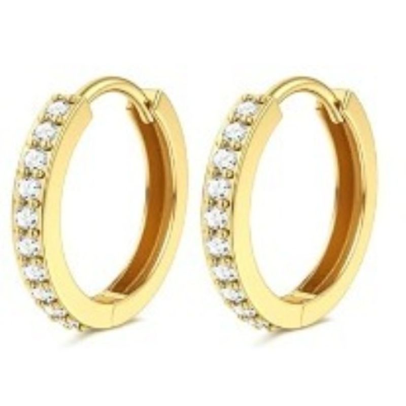 Bobisty 1 Pair 14K Gold Plated Flat Back Stud Hoops Earrings for Women Men CZ Stainless Steel Cute Cartilage Piercing Jewelry