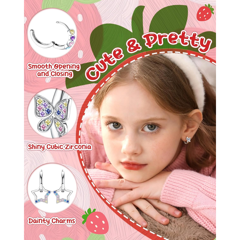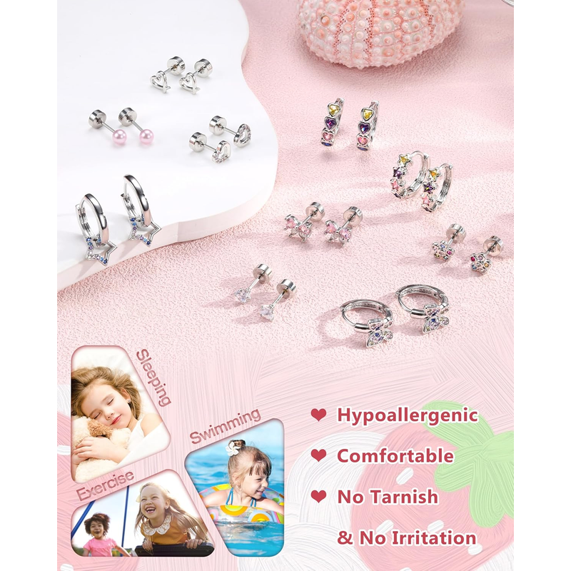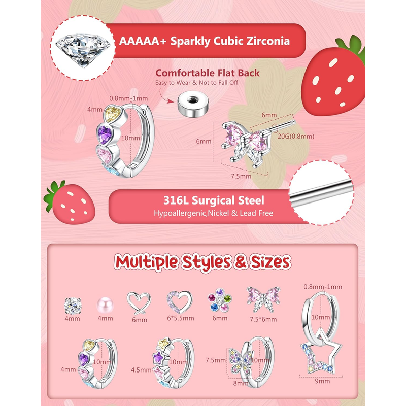 Bobisty 1 Pair Hypoallergenic Screw Back Stud Earrings For Women Surgical Steel Hoop CZ Butterfly Star Dangle Earrings Set 20G