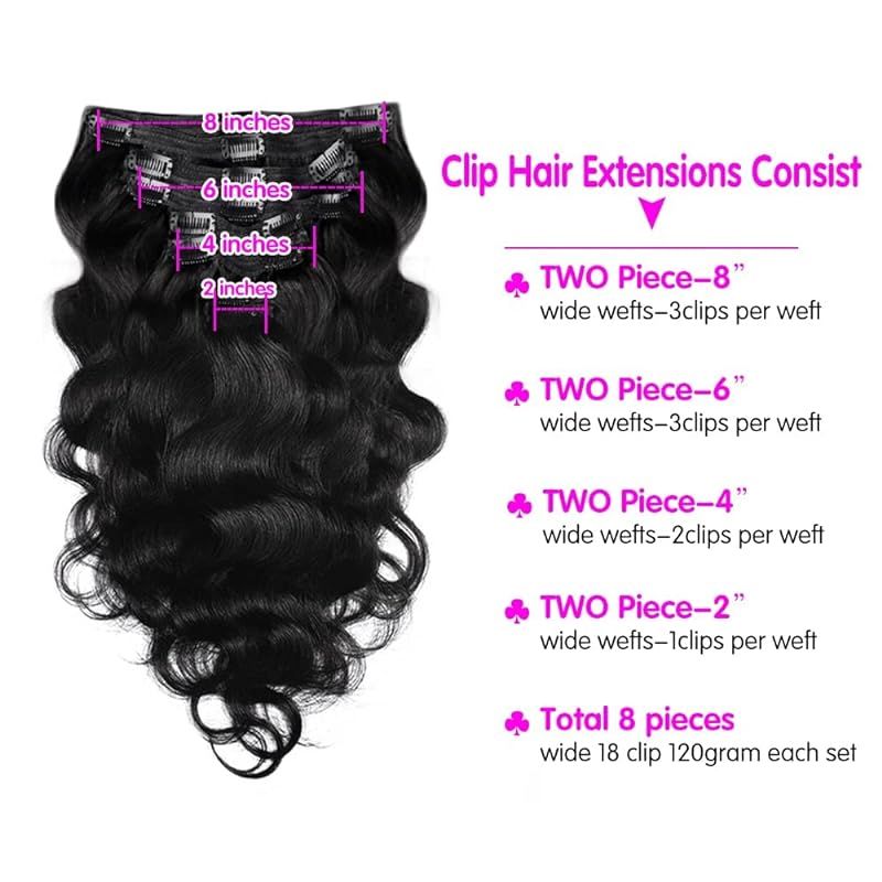 Body Wave 100% Brazilian Clip in Hair Extensions Human Hair 8Pcs Remy Hair Extensions Clip ins For Women with 18Clips 120g