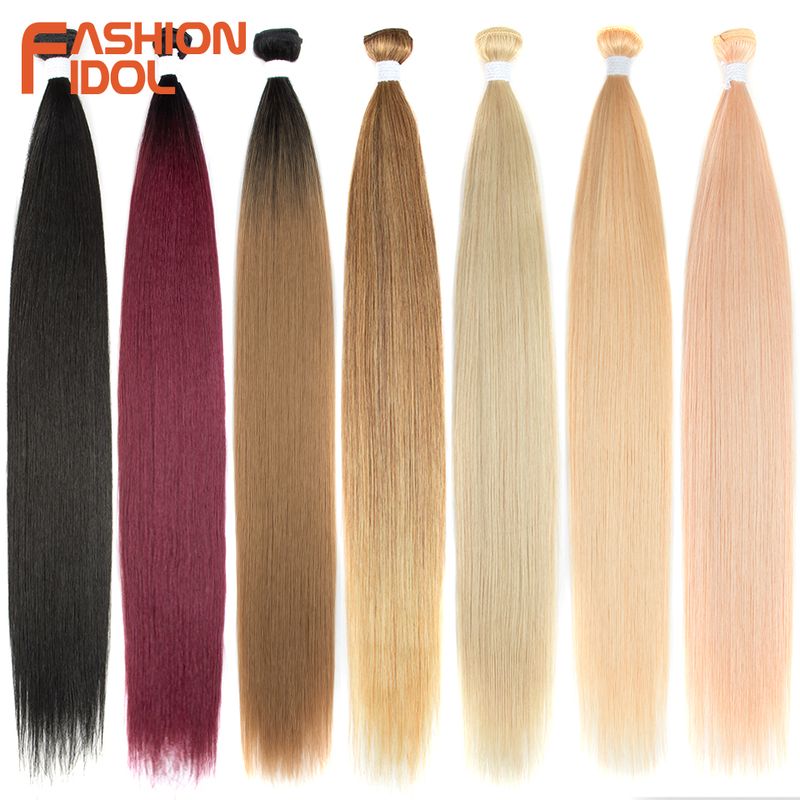 Bone Straight Hair Extensions Ombre Blonde Hair Bundles Super Long Hair Synthetic 24 Inch Straight Hair Full to End FASHION IDOL