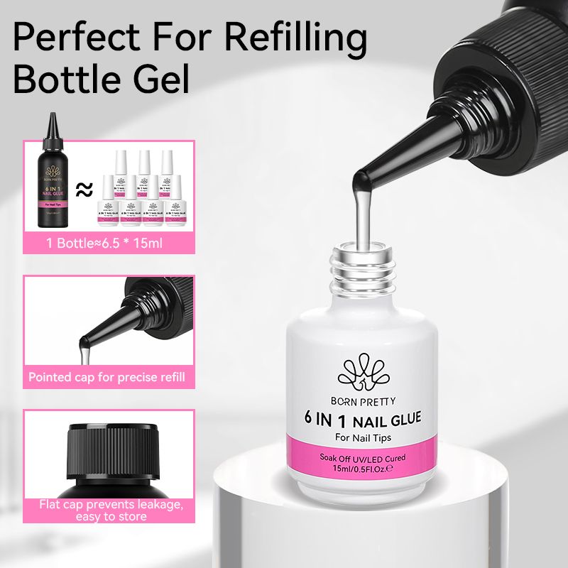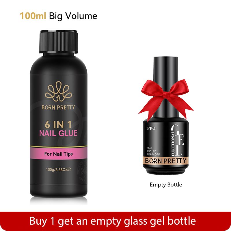 BORN PRETTY 100g 6 in 1 Nail Glue Gel Strong Nail Tips Gel Adhesive Press On Nails Super Top Coat Manicure Nail Supplies Design