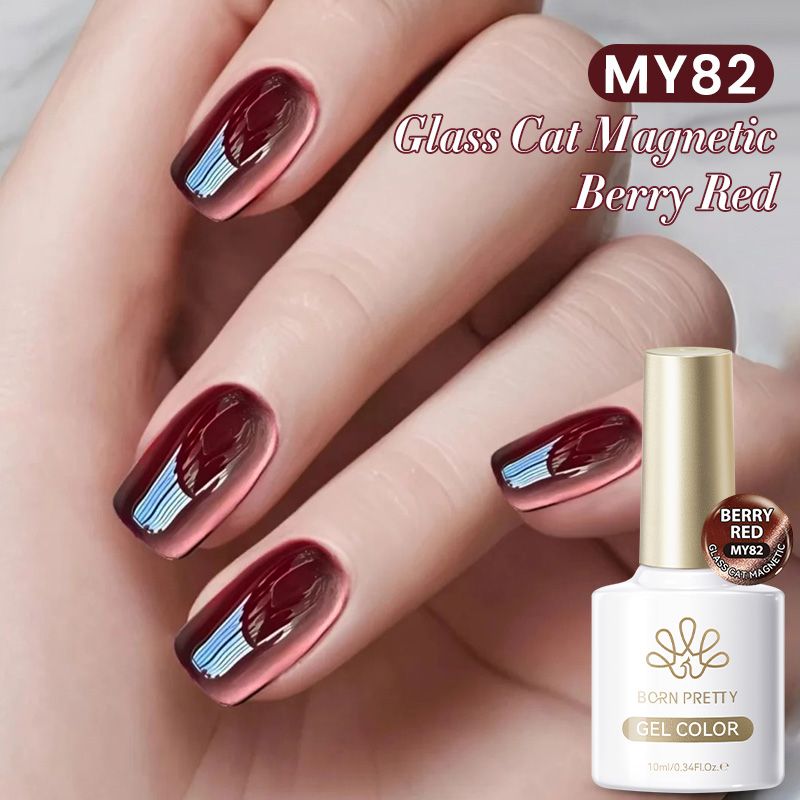 BORN PRETTY 10ml Coffee Brown Cat Magnetic Gel Nail Polish Winter Autumn Glass Beaded Sparkling Glitter Semi Permanent Varnish