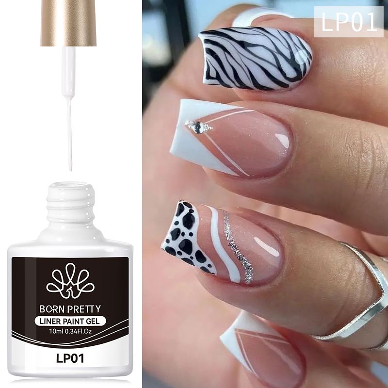 BORN PRETTY 10ml Glitter Silver Liner Paint Gel Nail Polish Line Stripe Gel Vernis Semi Permanent for Drawing Line French Nails