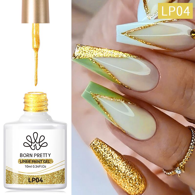 BORN PRETTY 10ml Glitter Silver Liner Paint Gel Nail Polish Line Stripe Gel Vernis Semi Permanent for Drawing Line French Nails