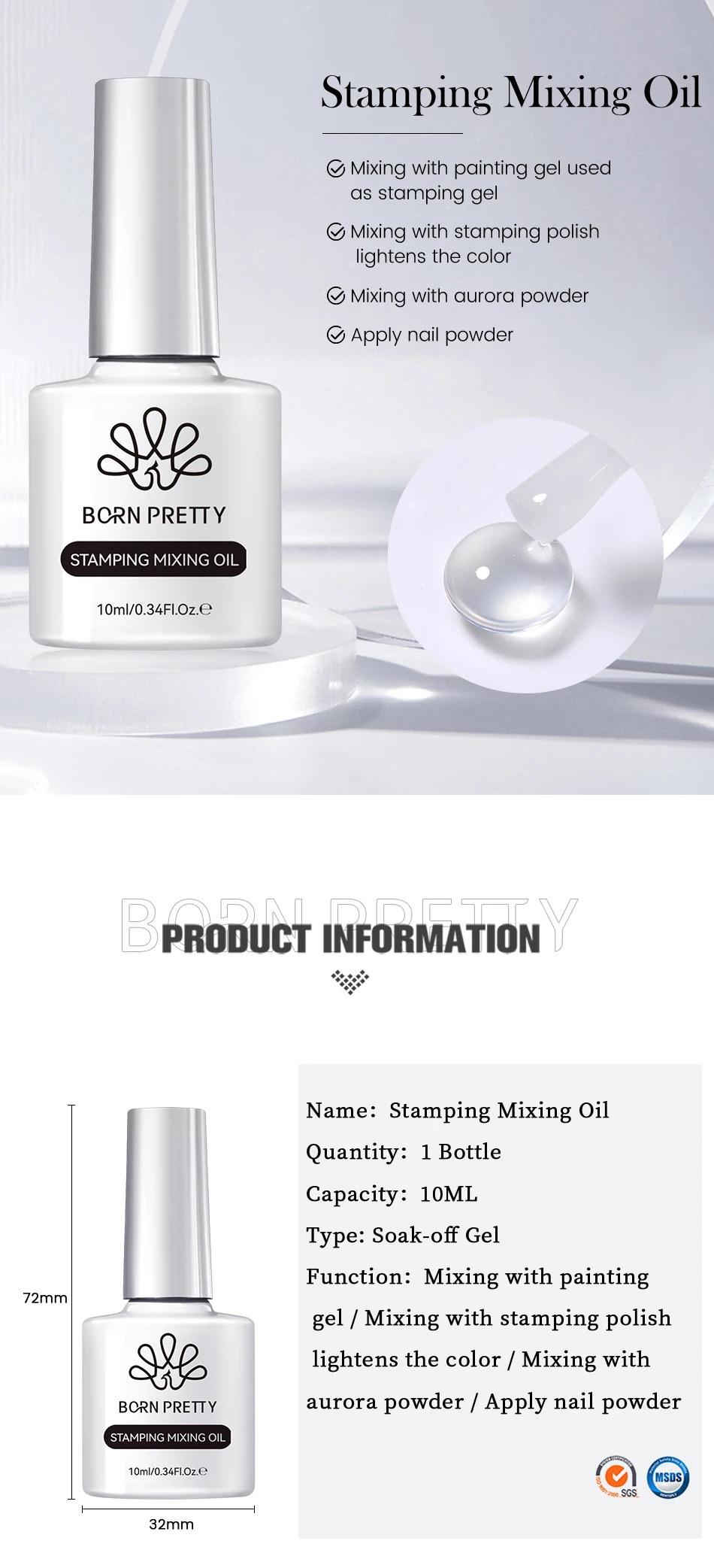BORN PRETTY 1 Bottle 10ml Stamping Mixing Oil