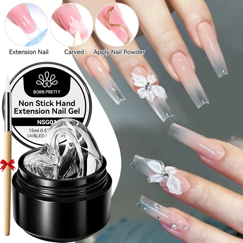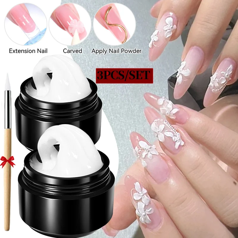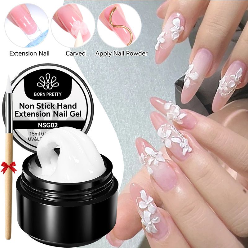 BORN PRETTY 15ml 3D Sculpting Shaping Carving Flower Gel White Clear Non Stick Hand Extension Gel Nail Polish DIY Acrylic Gel