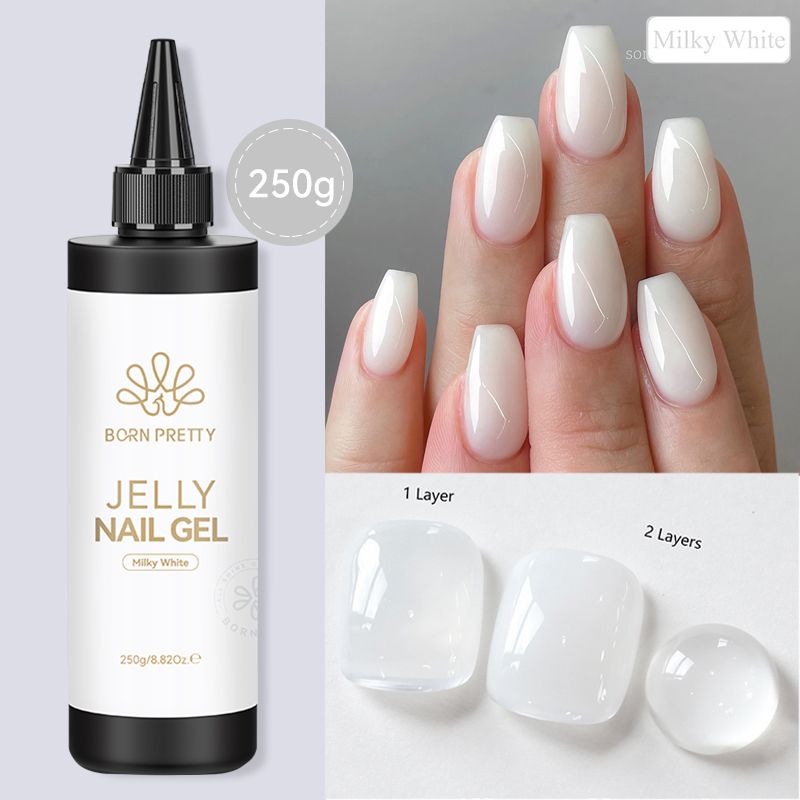 BORN PRETTY 250g Jelly Milky White Pink Translucent Nude Gel Polish Refilled Package Semi Permanent Soak Off UV Nail Art Varnish