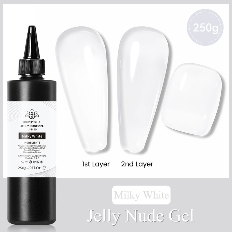 BORN PRETTY 250g Pure Black White Color Gel Nail Polish Semi Permanent Jelly Nude Gel Refilled Package Soak Off UV LED Gel