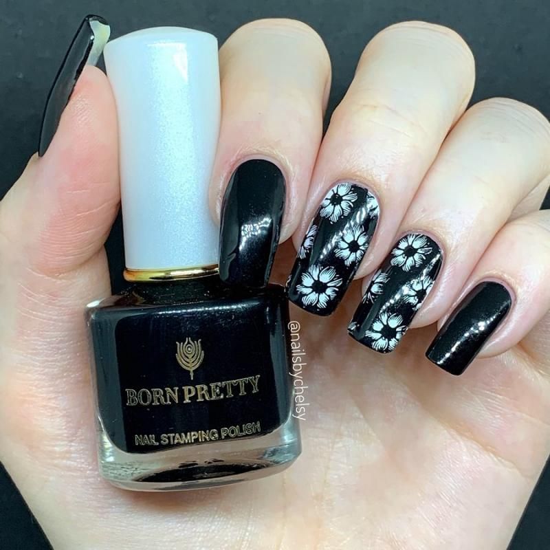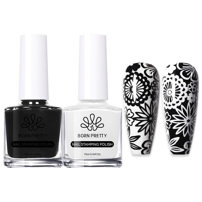 BORN PRETTY 2Pcs/Set 10ML Black White Nail Stamping Polish Varnish Gold Silver for Nail Art Plates Stamp Oil Stamping Series