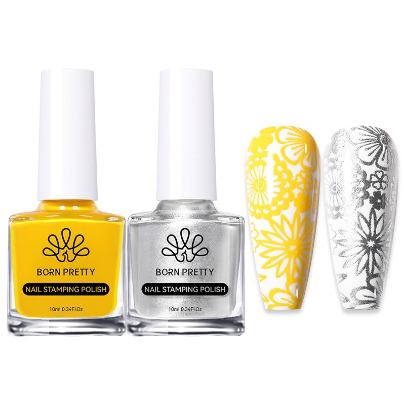 BORN PRETTY 2Pcs/Set 10ML Black White Nail Stamping Polish Varnish Gold Silver for Nail Art Plates Stamp Oil Stamping Series