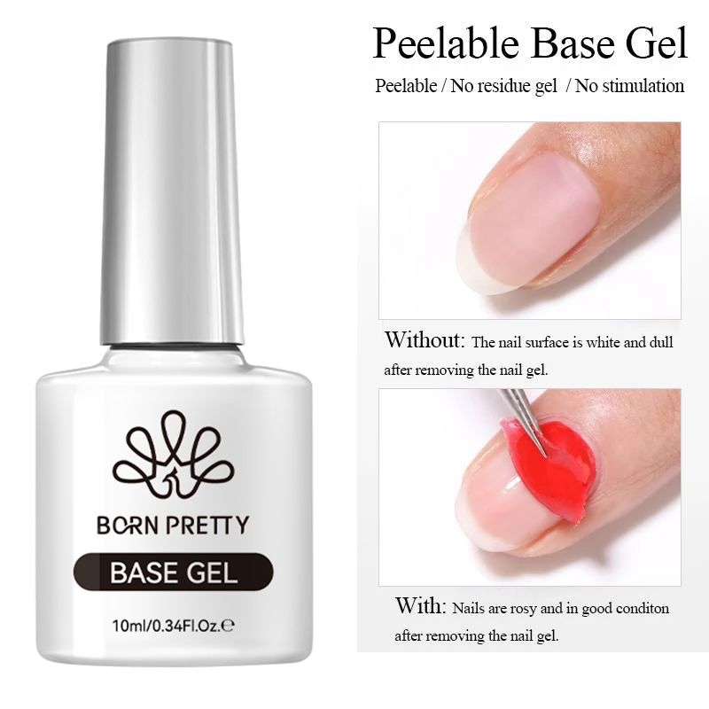 BORN PRETTY Peel Off Base Gel Long Wear Super Top Coat Basic Nail Gel Polish Enamel Varnish Soak Off Nail Art Manicure 10ml
