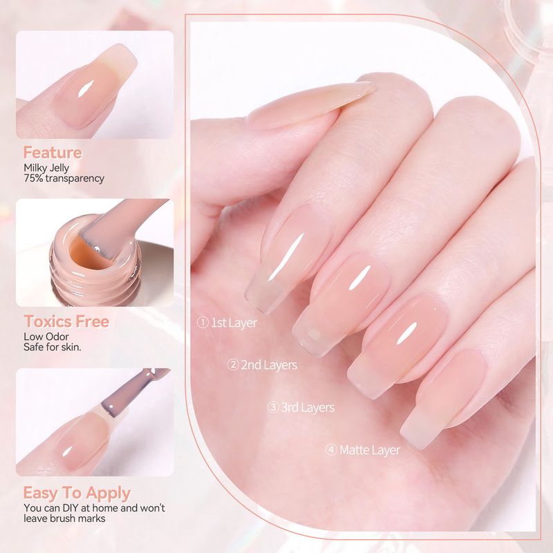 BORN PRETTY Purple Jelly Nude Gel Nail Polish 10ml Translucent Clear Gel Polish French Manicure Milky Natural Transparent Gel