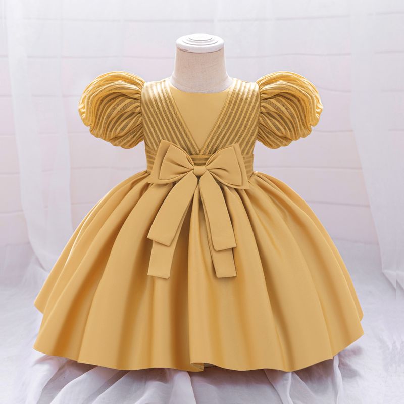 Bow Baby Summer Dress For Girls Toddler Birthday Princess Gown Puff Sleeve Baby Girl Wedding Party Dresses Newborn Clothes 0-3Y