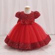Bow Christmas Baby Girl Dresse Infant Sequin 1st Birthday Red Party Wedding Prom Kids Dresses For Girl Lace Flower Princess Gown