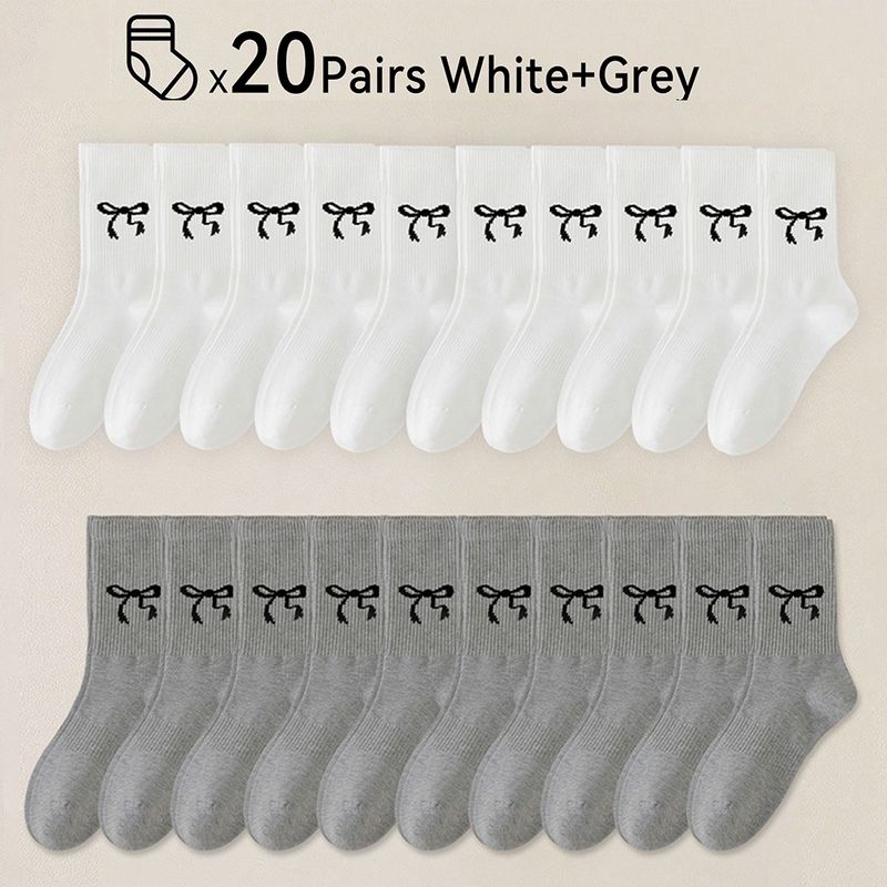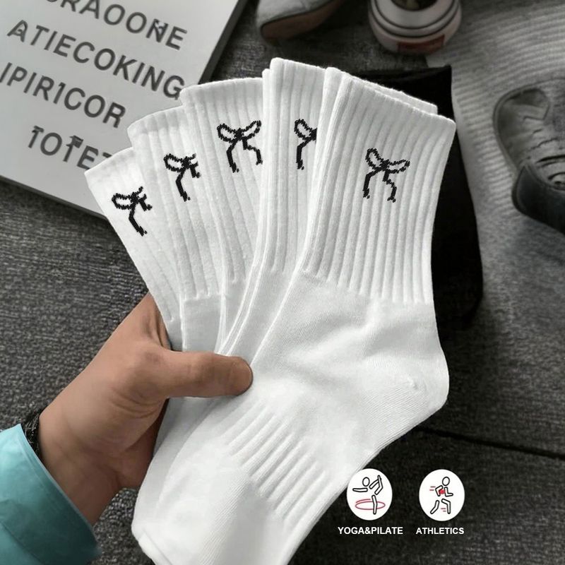 Bow Pattern Socks For Women Men White Black Running Hiking Dress Female Male School Work Clearance Dress Winter Sock Four Season
