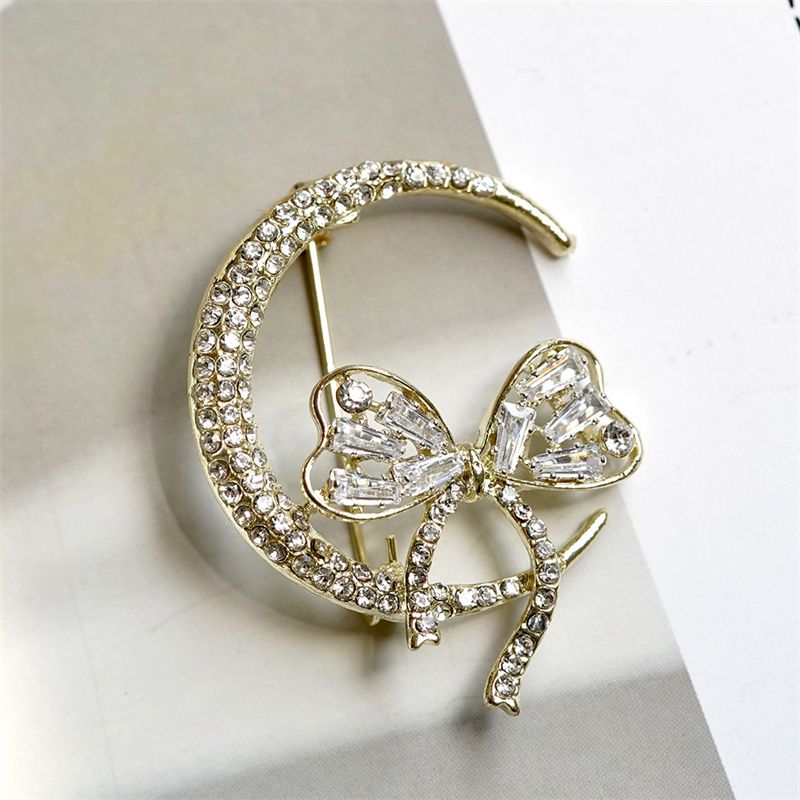 Bow Tie Zircon Rhinestone Brooch Female Simple Personality Fashion Pin Suit Anti-light Corsage
