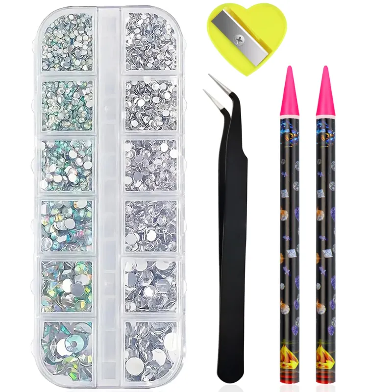 Boxed 3D Flat Back Nail Rhinestones Nail Gems Glass AB & Clear Crystal Rhinestones Kit Nail Art Charms DIY Manicure Accessories