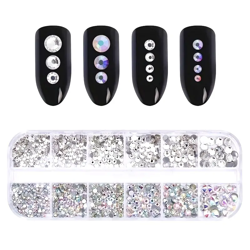 Boxed 3D Flat Back Nail Rhinestones Nail Gems Glass AB & Clear Crystal Rhinestones Kit Nail Art Charms DIY Manicure Accessories