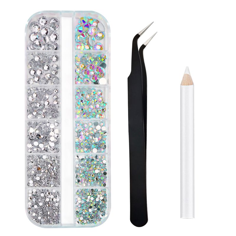 Boxed 3D Flat Back Nail Rhinestones Nail Gems Glass AB & Clear Crystal Rhinestones Kit Nail Art Charms DIY Manicure Accessories