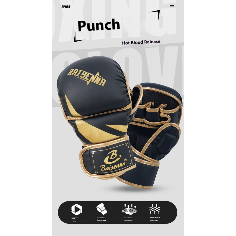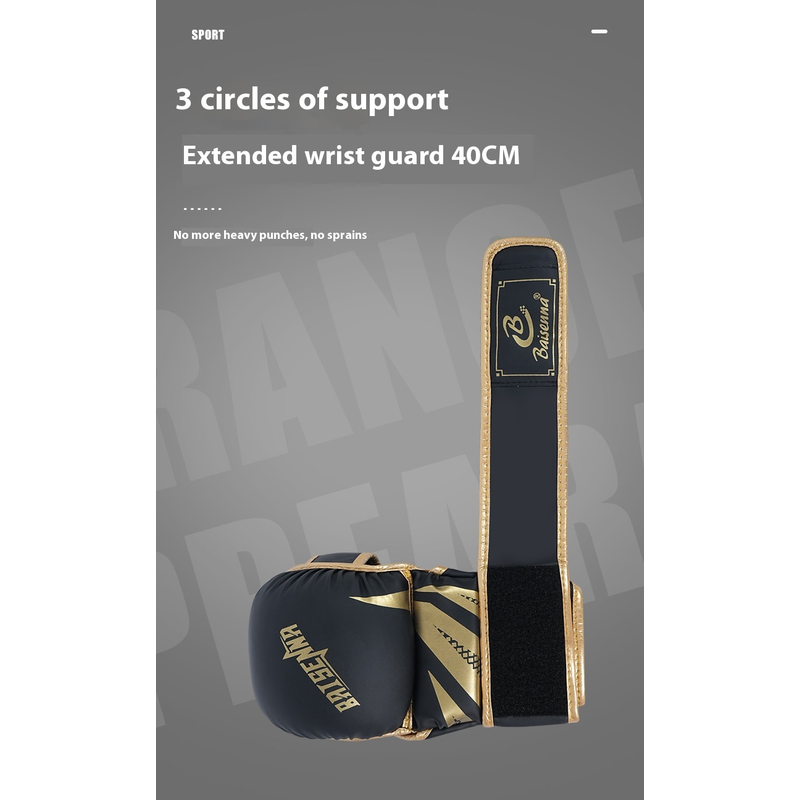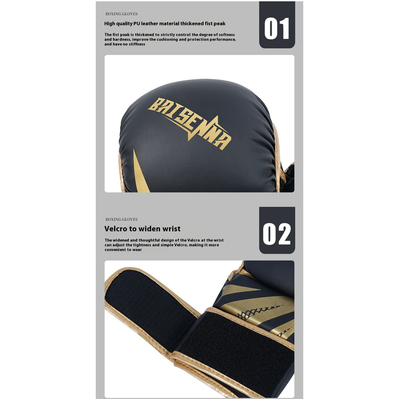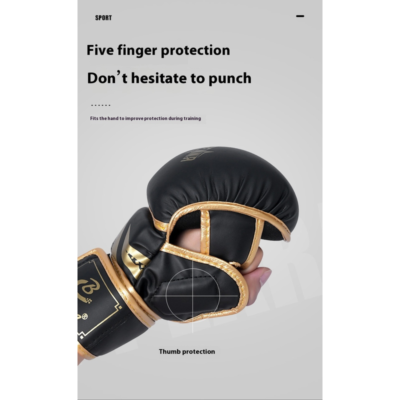 Color: Adult five finger black gold boxing gloves, adult five finger platinum boxing gloves, adult five finger black boxing gloves, adult five finger black and white boxing gloves, children's five finger black gold boxing gloves, children's five finger platinum boxing gloves, children's five finger black boxing gloves, children's five fingers black and white boxing gloves