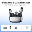 The BOYA mini 2, an upgraded super mini wireless microphone system,features upgraded Al noise cancellation technology, 80 dB SNR, and 120dB max SPL, with support for 24-bit audio recording. Despite its enhancedperformance, it remains lightweight and portable, designed forcompatibility with smartphones, tablets, and other devices to deliverclear and professional-quality audio.