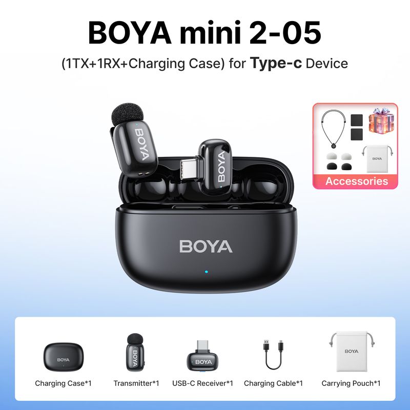 The BOYA mini 2 also adds parameter control via the BOYA Central App,allowing users to adjust gain and apply EQ control for different recordingneeds. Each transmitter provides up to 6 hours of use on a single charge,and the charging case extends total operating time to 30 hours. lt is idealfor content creation, live streaming, vlogging, and mobile journalism.