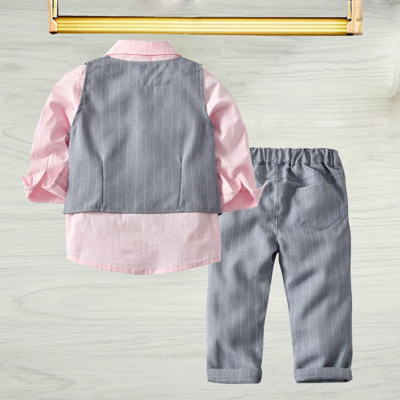 Boys Long Sleeve Shirt Vest Trousers Gentleman Bow Tie Pink 130cm