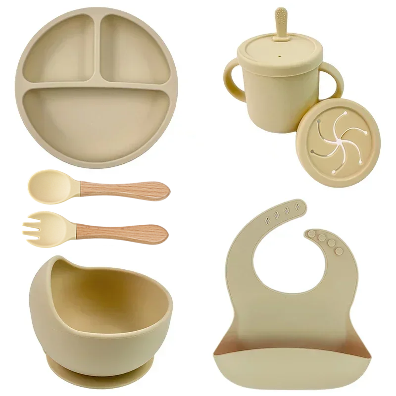 BPA Free Silicone Baby Feeding Set Sucker Bowl Dinning Plate Straw Cup Spoon Forks for Kids Baby Tableware Children Dishes
