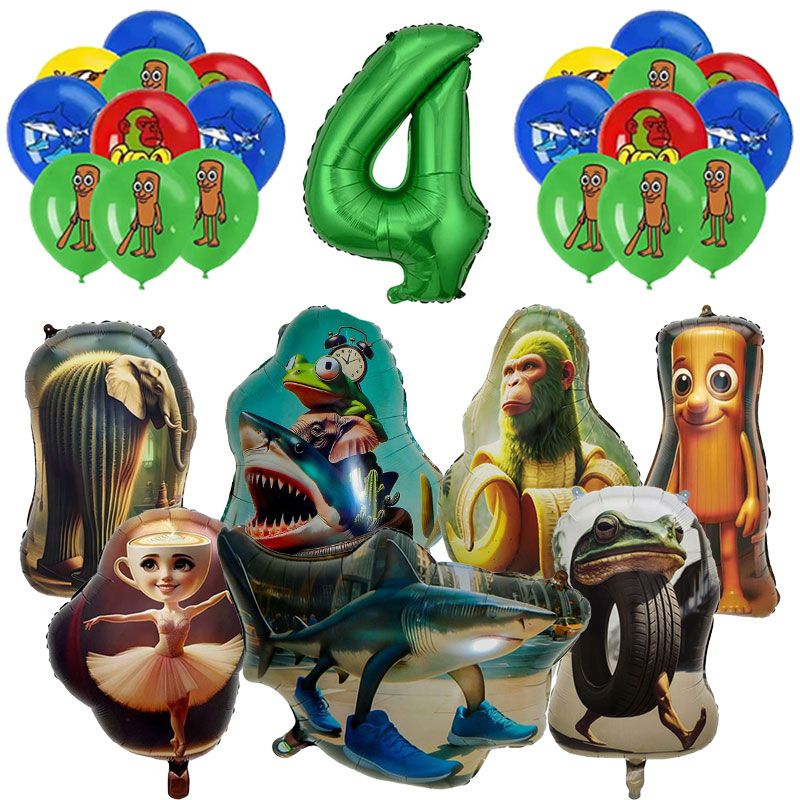 Brainrot Birthday Balloons TungTung Sahur Tralalelo Aluminum Foil Balloon Set for Kids Italian Brainrot Party Balloon Decoration