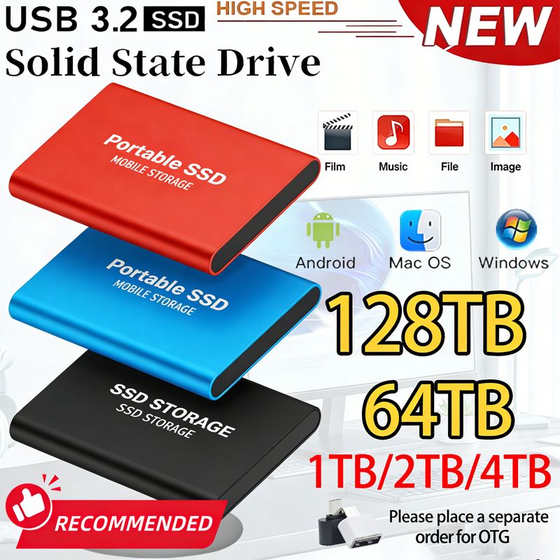 Brand New 4TB Plug and Play External Hard Drive USB 3.2/Type-C Solid State Drive 2TB 4TB Backup Storage Device For Windows MAC