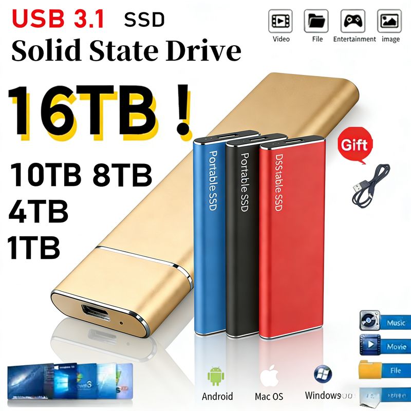 Brand New 4TB Plug and Play External Hard Drive USB 3.2/Type-C Solid State Drive 2TB 4TB Backup Storage Device For Windows MAC