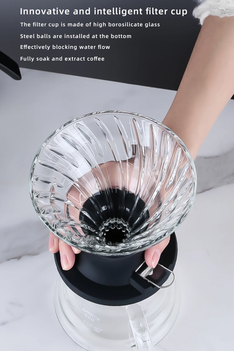 Brand New And High Quality Adjustable Coffee Dripper Coffee Filter Glass With Funnel Coffee Filter Tray