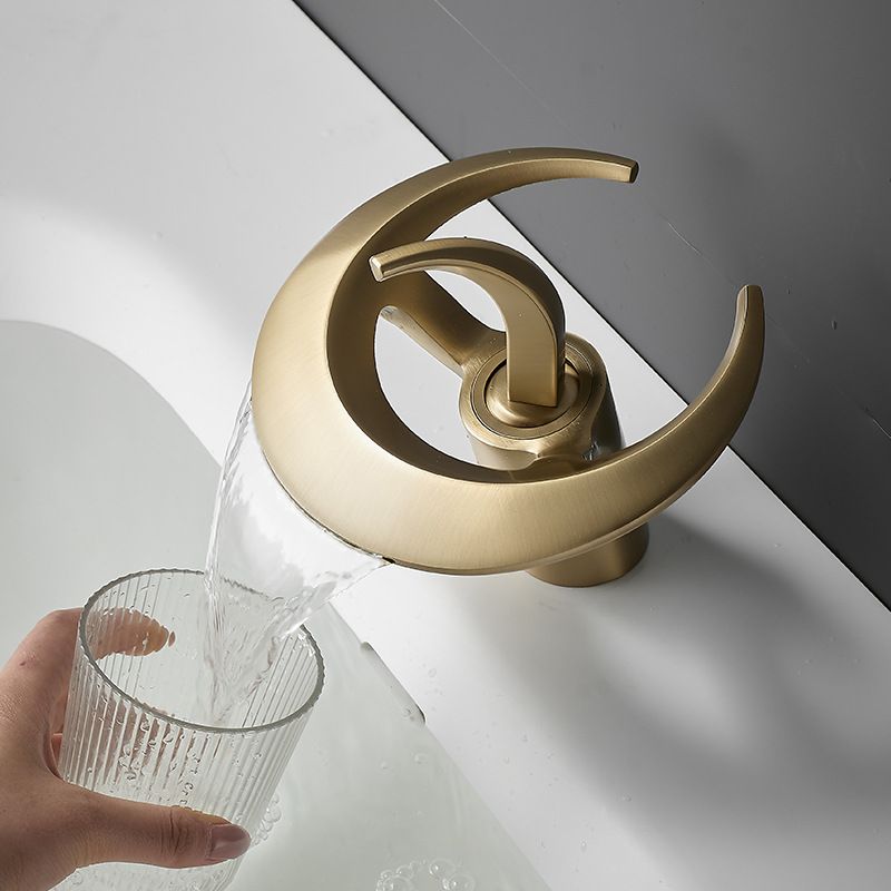 Brass Waterfall Faucet Hot and Cold Water Tap Bathroom Single Handle Single Hole Deck Mounted Basin Mixer Faucet