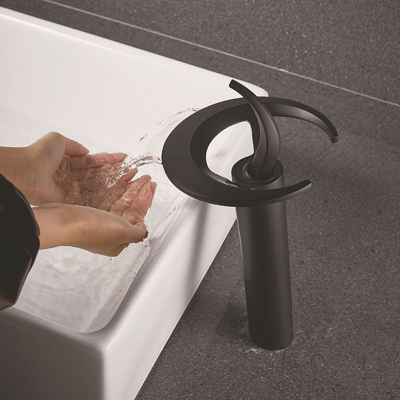 Brass Waterfall Faucet Hot and Cold Water Tap Bathroom Single Handle Single Hole Deck Mounted Basin Mixer Faucet
