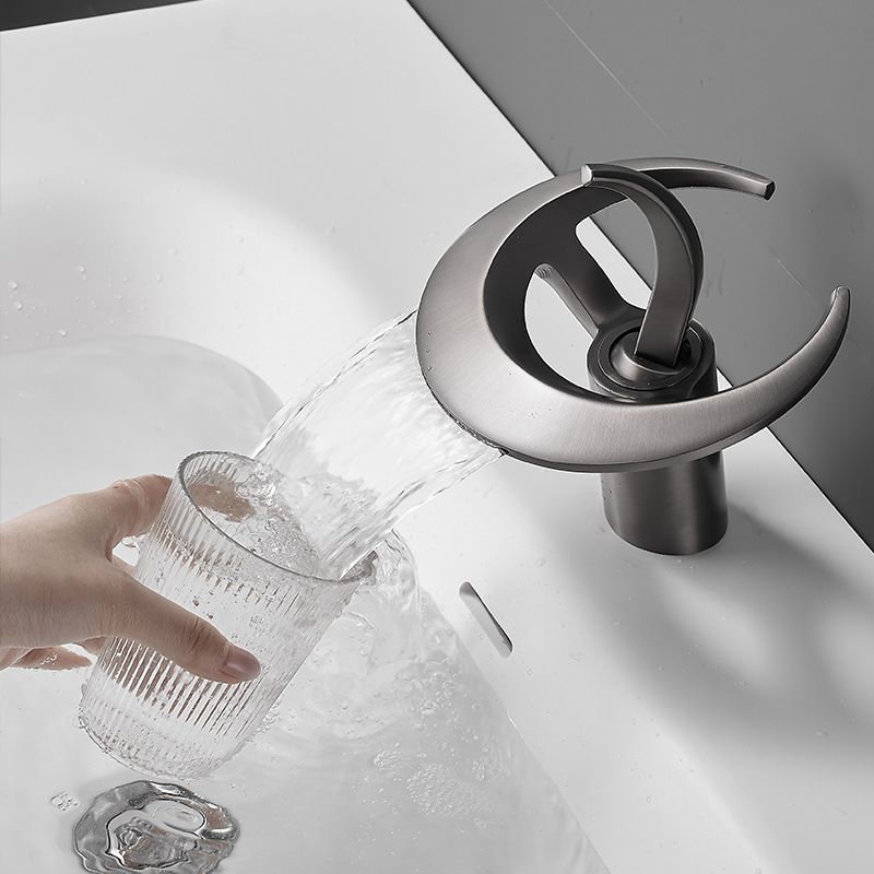 Brass Waterfall Faucet Hot and Cold Water Tap Bathroom Single Handle Single Hole Deck Mounted Basin Mixer Faucet