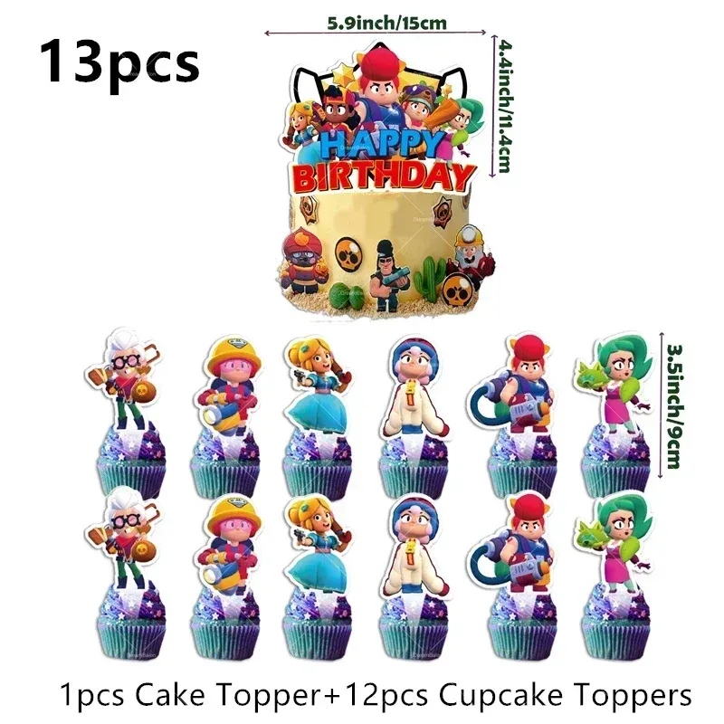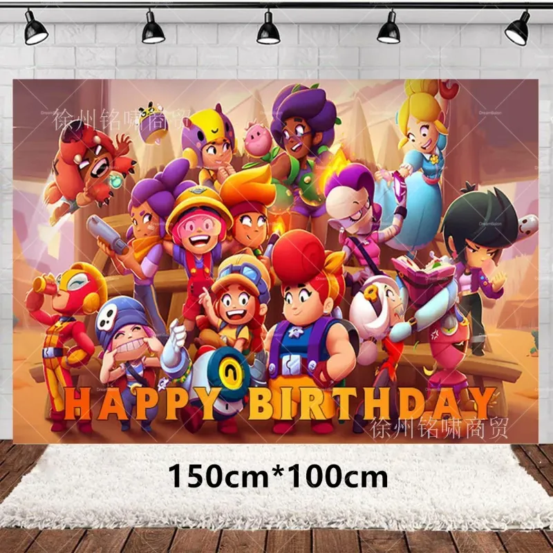 Brawl Stars Balloons Happy Birthday Banner Party Decoration Background Cake Topper Sticker Disposable Tableware Game Keychain