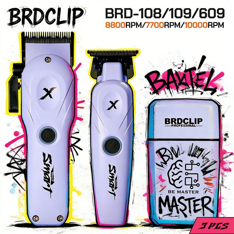 BRDCLIP X Series Professional 8800rpm Barber Clipper Set Hair Trimmer 10000RPM Foil Shaver Fade Men's Haircutting Set