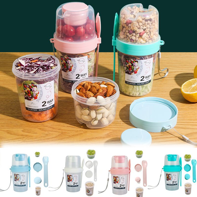 Breakfast On The Go Cups, Salad Cup To Go, Take And Go Yogurt Cereal Overnight Oats Snack Parfait Containers & Salad Dressing Ho