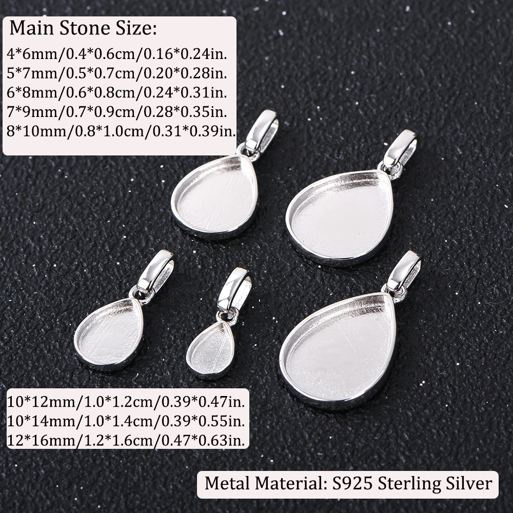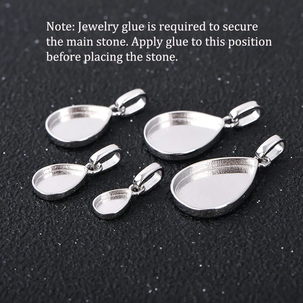 Breast Milk Resin Pear Solid Back Pendant Bezel Settings,Solid S925 Silver Pendant Blank Setting,DIY Pendant Accessories