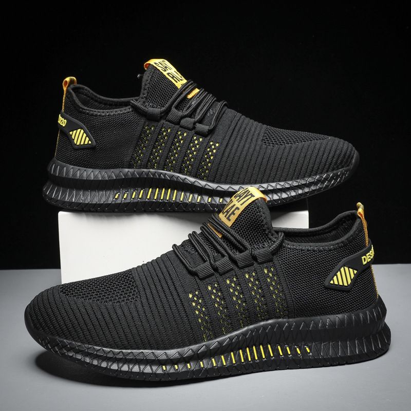 Breathable Flying Woven Mesh Shoes Outdoor Fitness Running Shoes Black yellow 48